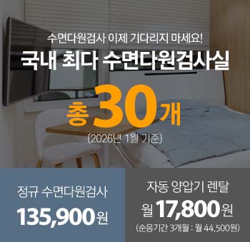 현재 보험회사에 근무하고 있는 터라, 수면무호흡이나 코골이의 보상 문제로 종종 이야기 하던 중  고객이 수술을 하셔야 한다고 비용청구가 되는지 여부를 확인하기 위해 수면센터를 방문하게 되었습니다.  고객 정보이기 때문에 원장님을 뵙고 이야기를 해야해서 진료신청을 직접하였고 본인이 검사를 받았는데  무호흡일 수 있다는 내시경검사 소견에 다원검사를 예약하였고, 하루 수면하면서 직접 검사 후  결과를 받았는데 중증에 가까운 수치라는 것을 알게 되고 수술을 결정하였습니다.  양압기는 평생 써야하고 안경처럼 사용할 때만 좋아진다는 이야기에 수술 일자를 잡고 수술하였고  수술 후 첫 3주 동안(회복기) 불편한걸 제외하면 적극 추천 합니다.   세 아이의 아빠로, 수면무호흡으로 인해 심한 코골이와 잠버릇으로 아이와 아내와 따로 잠을 자던 제가  지금은 둘째 아이가 같이 자자고 뛰어 올 만큼 좋아졌으며 가지고 있던 만성 비염은 수술 후 아예 없어지고 140/90정도 되던 혈압도 정상치로 회복이 되어 생활에 만족도가 상당히 높아졌습니다. 높은 비용은 실손 의료비에서 대부분 보상되기 때문에 적은 비용으로 할 수 있는 수술을 적극 권유합니다. (양압기는 실손 의료비 보상에서 제외 됨)  만족스런 삶과 건강을 찾게 좋은 수술 해 주셔서 감사합니다.